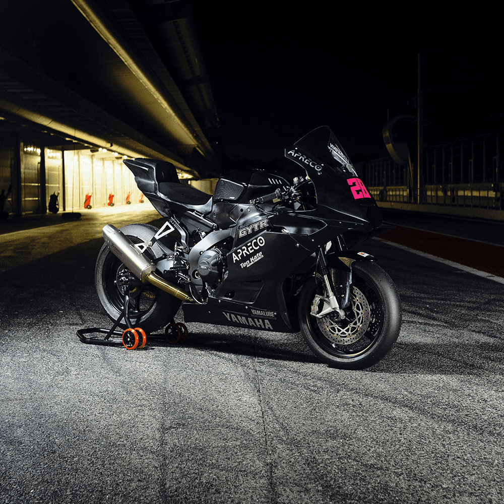 Liquid cooled inline four-cylinder with cross-plane crankshaft and modified with GYTR Engine parts
